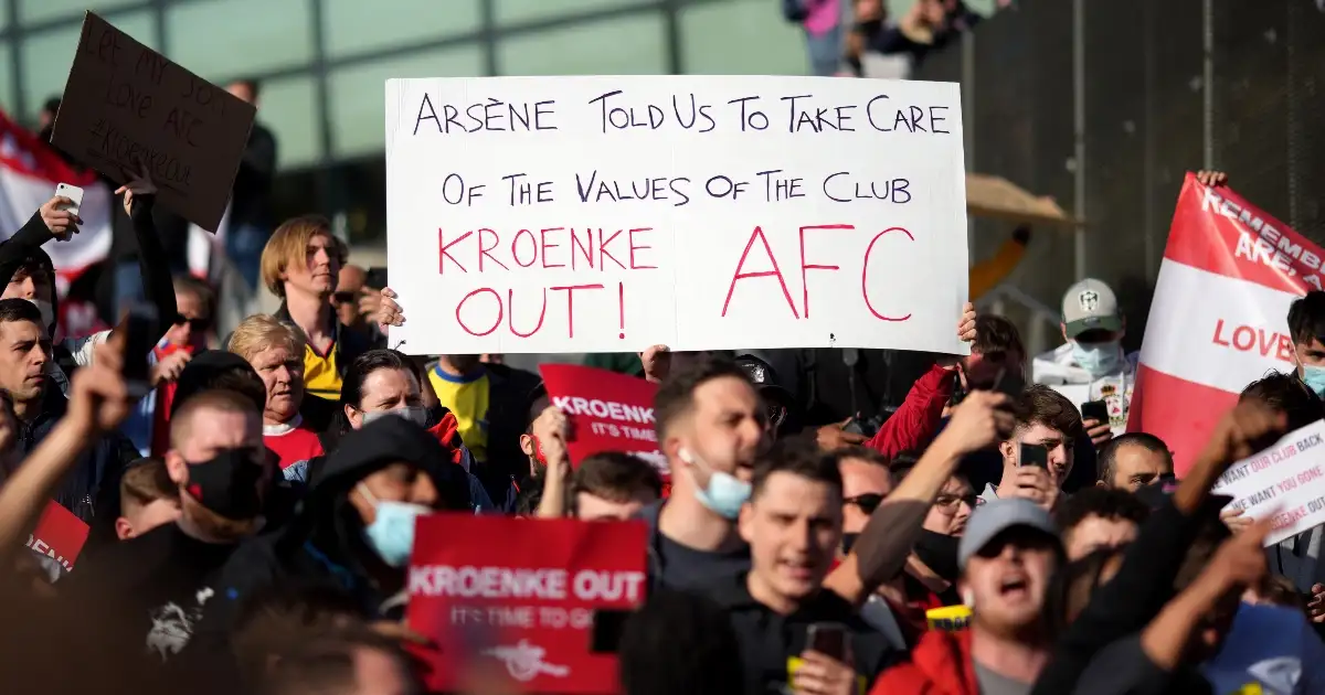 They held banners protesting against owner Stan Kroenke’s handling of club affairs.