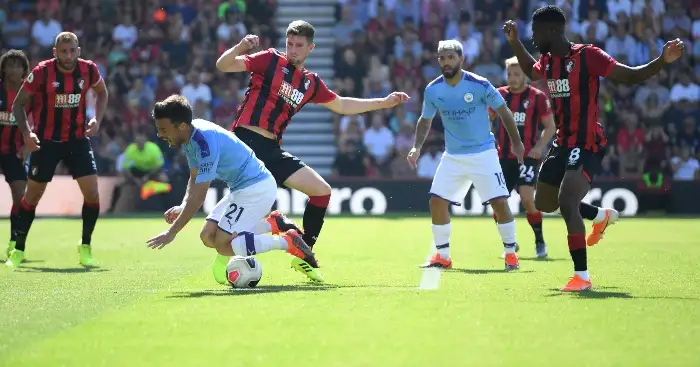 City were denied what looked to be a certain second-half penalty in their 3-1 win at Bournemouth when David Silva had his foot stood on by Jefferson Lerma.
