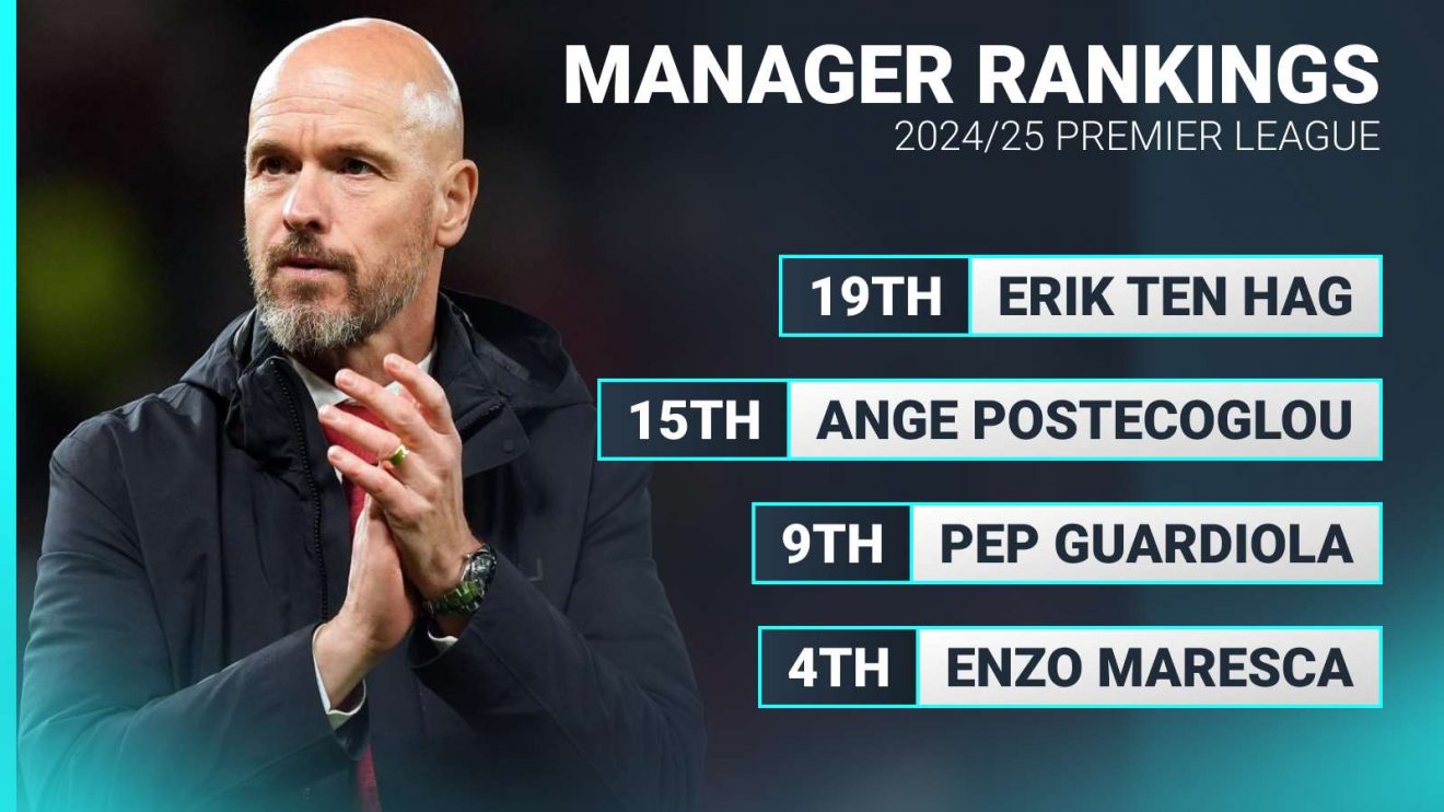 Ten Hag avoids bottom spot in latest Premier League manager rankings with a newcomer on top