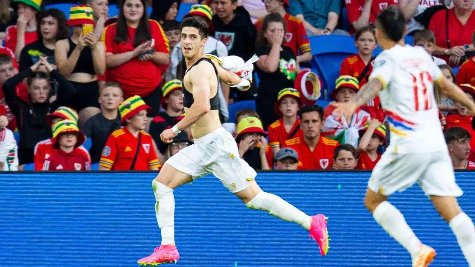 But Moore’s red card – that appeared harsh on first glance – confirmed Armenia’s first win in 10 games on a crazy night at Cardiff City Stadium.